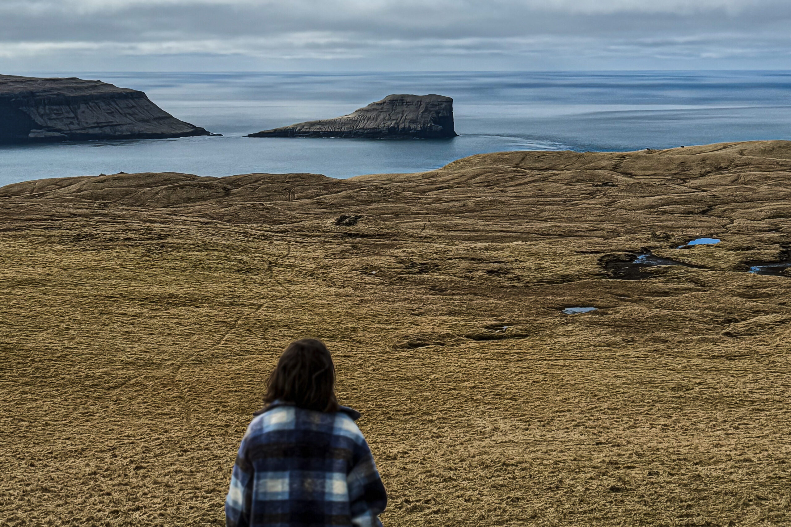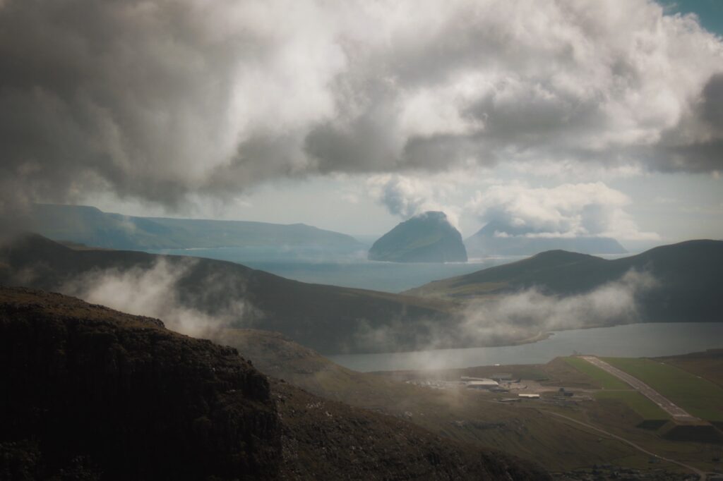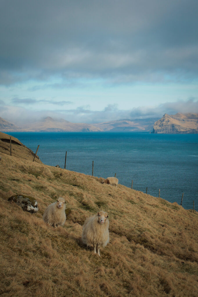 Head to the left side of the lake and climb up the mountainside to the top. Be careful—the stones can slip under your feet, and the ground is slick! Just because the sheep here leap around like gravity doesn’t exist doesn’t mean that’s actually the case. XD Fortunately, this climb, while steep, isn’t long. It requires more attention and patience than any kind of superhuman fitness. The views from the top? On a clear day, you might even catch a glimpse of Drangarnir, Tindhólmur, and Mykines! And from the other side of the plateau, you can see the peaks of Streymoy, and if you squint hard enough, even the tiny island of Koltur!